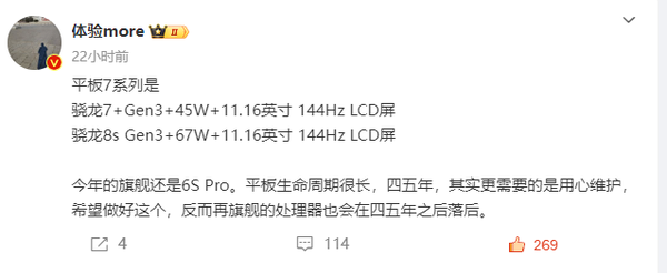 据该博主透露,两款平板均配备了一块11.16英寸、刷新率高达144Hz的LCD屏幕,这与之前Pad 7 Pro将采用OLED面板的预测大相径庭。在处理器配置上,也与之前的爆料存在差异。原本有消息称,小米平板7可能搭载高通骁龙8 Gen2移动平台,而Pad 7 Pro则配备骁龙8 Gen3。
