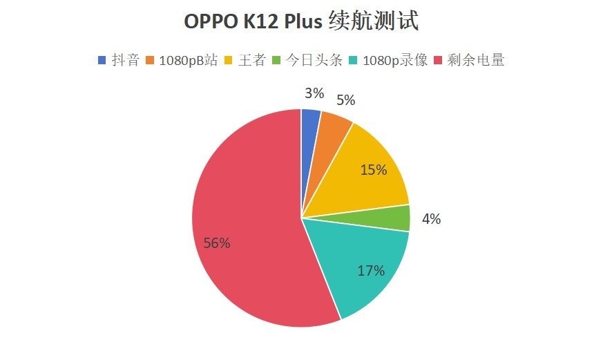 经实测一小时 1080P 在线视频耗电 5%,一小时抖音视频耗电3%,一小时今日头条耗电 4%,一小时王者荣耀排位赛(90 帧)耗电 15%,一小时 1080P 60 帧视频录制耗电 17%。最后 5 个小时测试下来还有 56% 的电量,电量十分耐用。