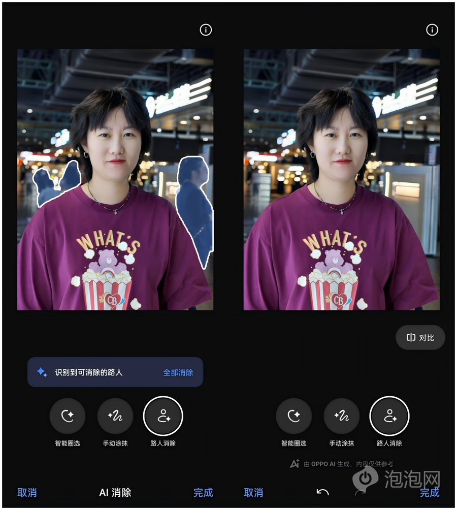 如果在拍摄中,出现了路人或者其他杂乱的场景,还可以通过AI消除2.0场景进行后期处理,将画面中不想要的部分去除,让画面更加纯净。