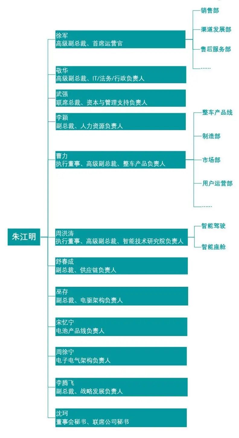 也是因为朱江明本身技术出身的特点,所以将公司的整车开发、电驱、电池等核心技术团队长期设置为一级部门,亲自进行管理。