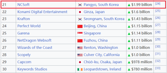 NCsoft是总部位于韩国的著名游戏开发商和发行商,主要业务领域涉及主机+PC+移动端产品,是全球游戏收入排名第21的游戏公司(依据上一财年年报收入数据)。