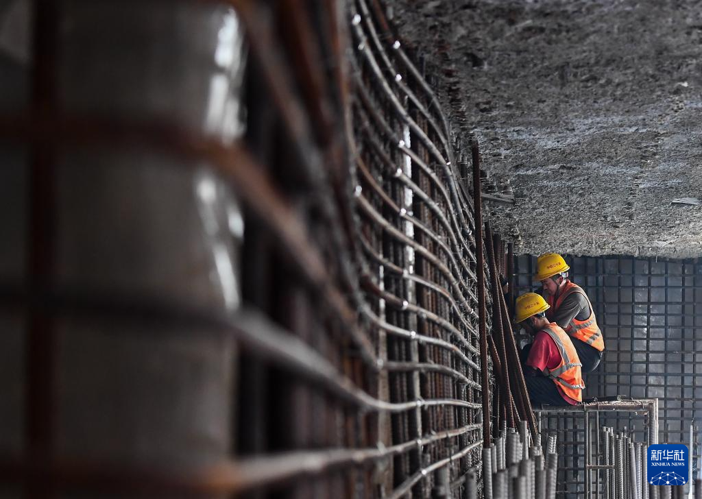 10月12日,工人在三亚河口通道工程项目工地施工。