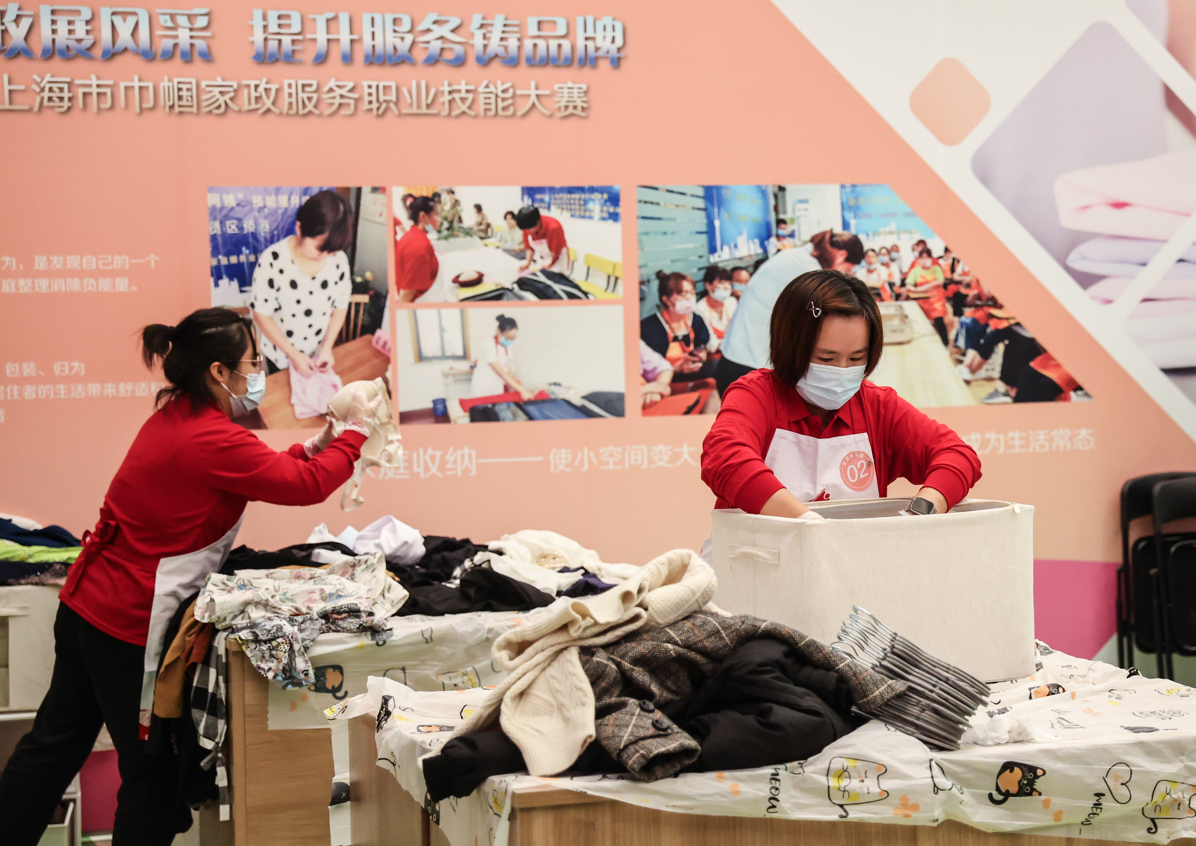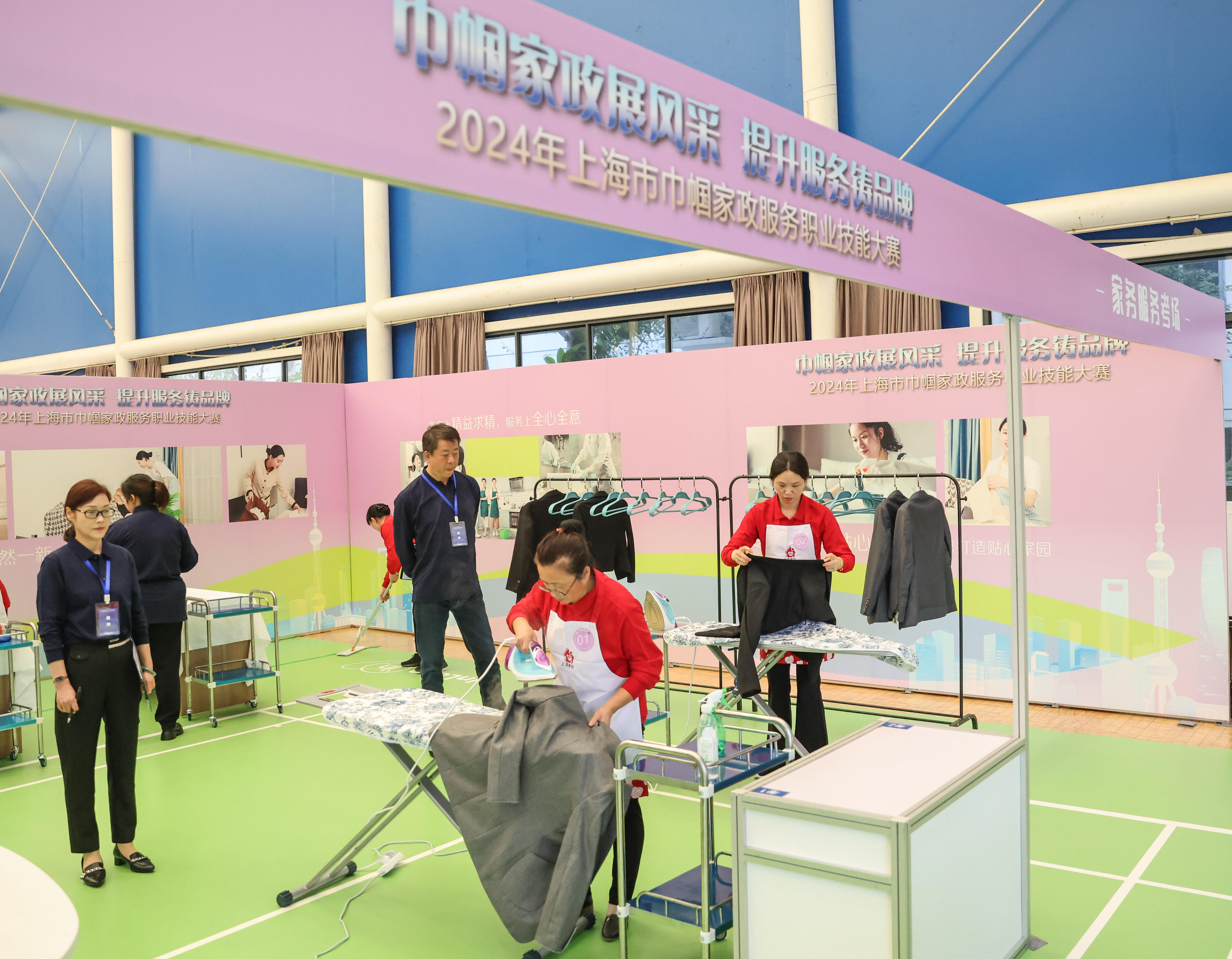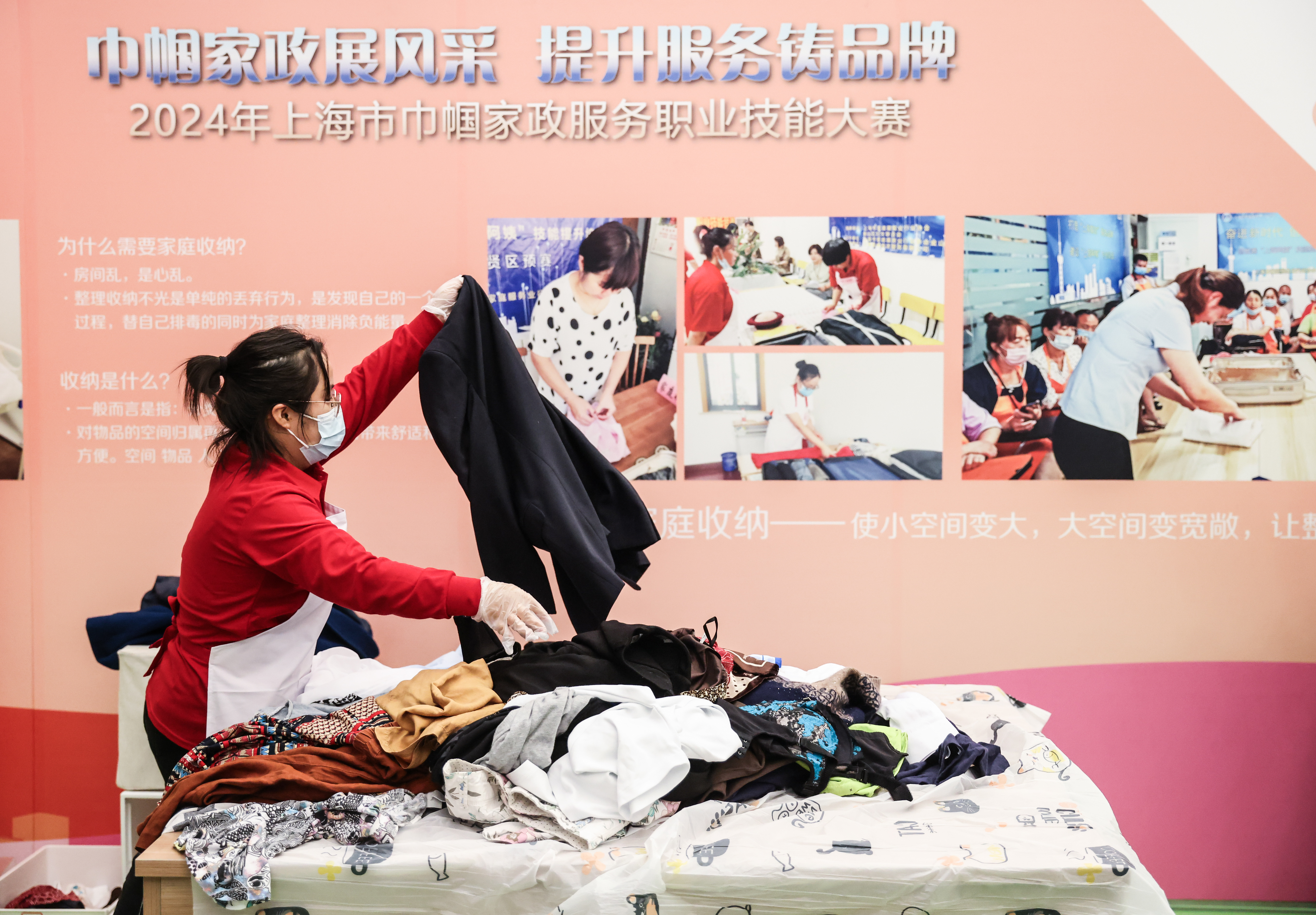 洗涤熨烫衣物、保洁美化家居、照护新生儿和婴幼儿、月子餐制作、老人生活照护康复服务、卧室衣帽间整理收纳……在10月12日开幕的2024年上海市巾帼家政服务职业技能大赛上,来自全市的家政精英们在赛场上展开激烈角逐,全面展现专业技能。