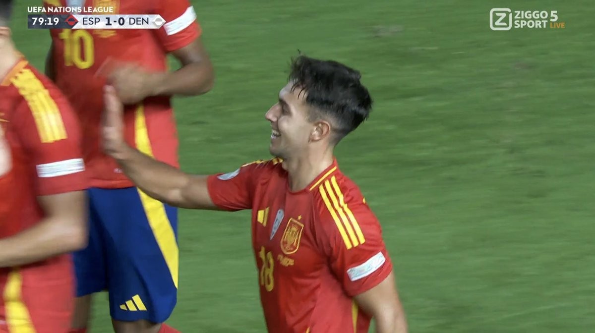 在与丹麦队的欧国联比赛中,苏比门迪下半场破门为西班牙队首开记录,斩获国家队生涯处子球。