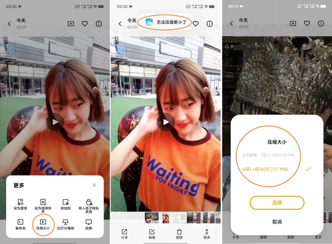 在头部短视频平台上,娱乐资本论随意挑了一些曾在2018、2019那几年播放量最高的视频,使用App自带的下载功能下到手机上。此时就可以发现,同一个账号的近似主题(例如都是拍人的、都是拍风景的),最热门视频往往是被严重压缩过的,仅有2M左右,而新上传的视频,就有7M大小,清晰度更高,并且支持进一步向下压缩。