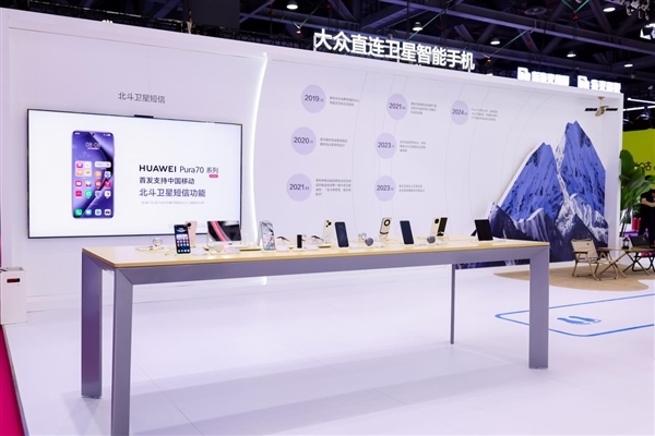 其中,华为Pura 70系列凭借其双星通信能力,成为此次展会上备受瞩目的亮点。同时,展区现场还设置了北斗卫星专区,Mate X5系列、Mate 60系列、Pura 70系列及nova 12系列等产品悉数亮相。