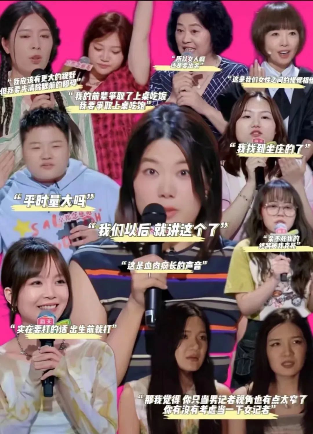 早年在脱口秀舞台,因女性从业者稀缺,曾经思文一人就独占“脱口秀太后”赛道,后来的杨笠怼男出圈却也因孤木难支遭到舆论合围。