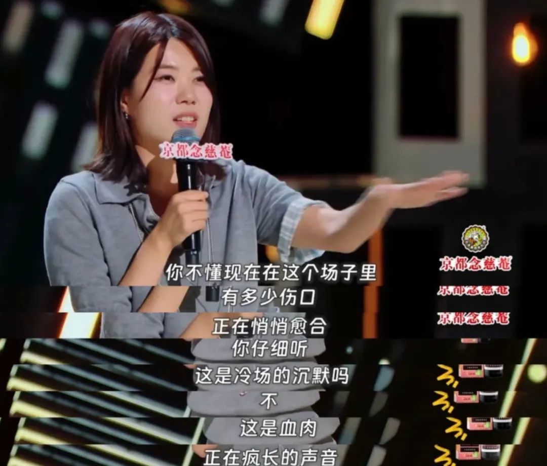 从大局观上说,多年来脱口秀女演员迅猛成长,确实令综艺行业看到了更多内容可能性。比如杨笠,想“上桌”的她今年终于完成《喜剧之王单口季》总编剧的身份跨越,但她仍共情于当下女演员普遍的表达困境与低分困局,其最新金句“你不懂这场子有多少伤口正悄悄愈合,这是冷场的沉默吗,这是血肉正在疯长的声音”就像吹响了女演员继续勇敢发声的冲锋号角。