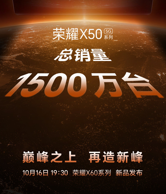 第一场发布会在10月16日19点30分,荣耀将发布荣耀X60、荣耀X60 Pro等机型。荣耀X50系列的中国大陆出货量已经超过了1000万部,是近一年来最畅销的国产机型之一,而荣耀X60将配备联发科的天玑7025芯片,后置圆形摄像头模组,搭载超大容量的6600mAh青海湖电池,支持快速充电,后置1.08亿像素的超大底主摄,并且是首款支持卫星通信技术的千元级智能手机。