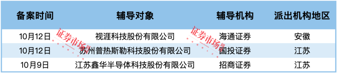 据统计, 10月7日至10月13日,新增辅导备案企业3家 ,分别为江苏鑫华半导体科技股份有限公司(以下简称“鑫华半导体”)、苏州普热斯勒科技股份有限公司(以下简称“普热斯勒”)和视涯科技股份有限公司(以下简称“视涯科技”)。