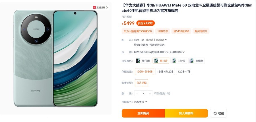 华为Mate 60 >> 券后4999元