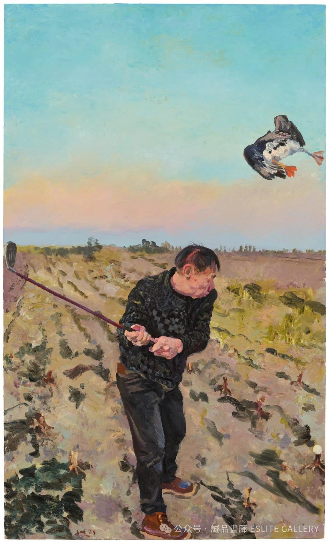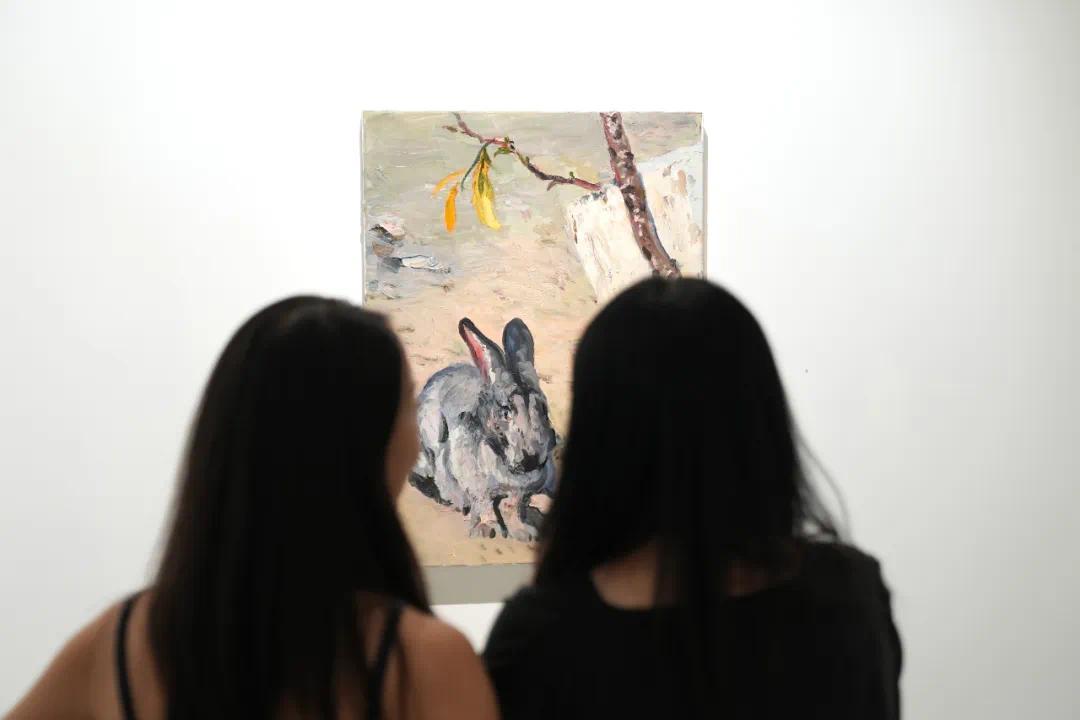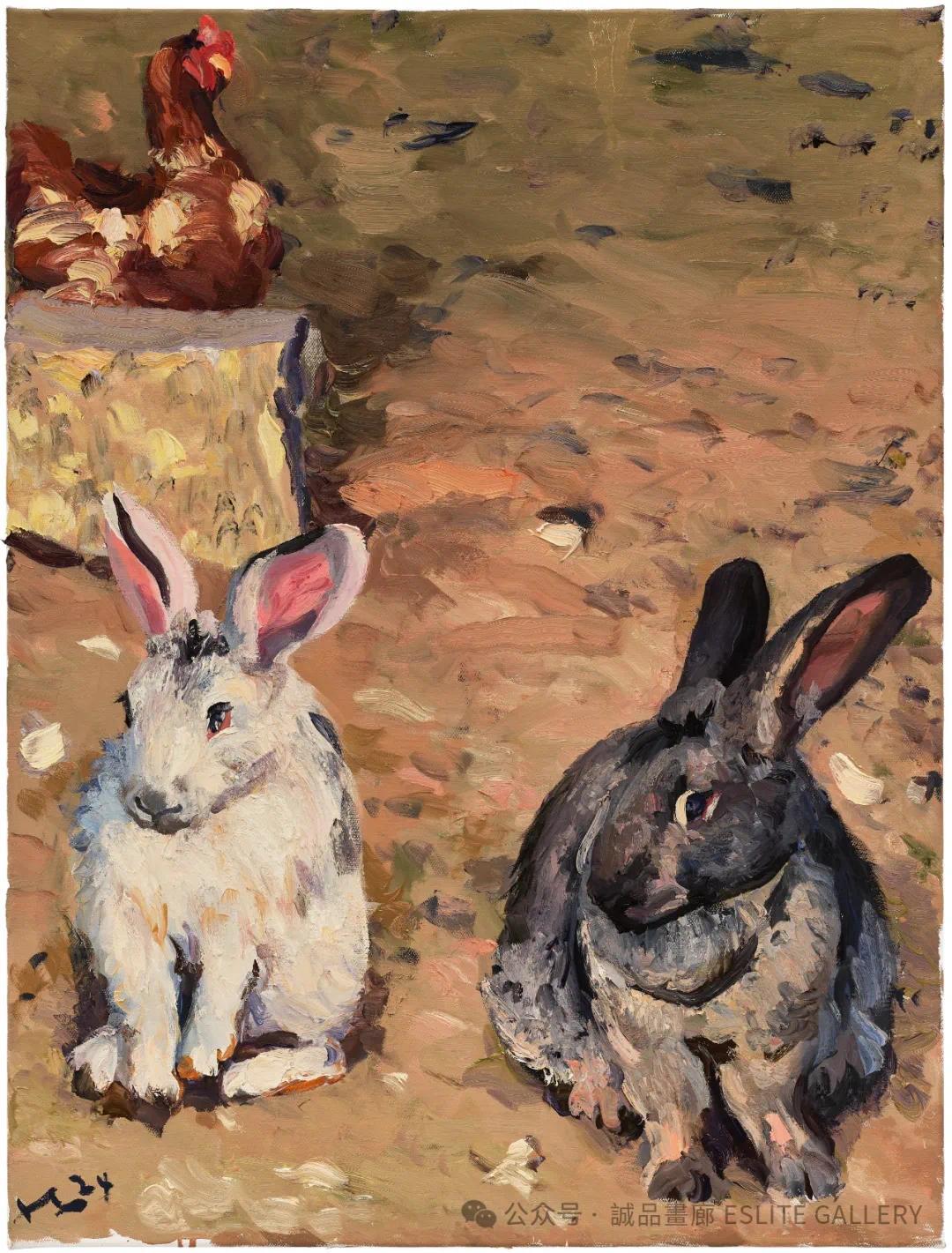 ▲ 刘小东,兔子石头鸡,2024,油彩/亚麻布,80 x 60 cm