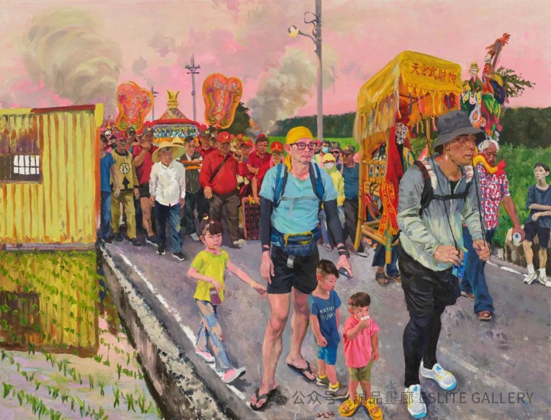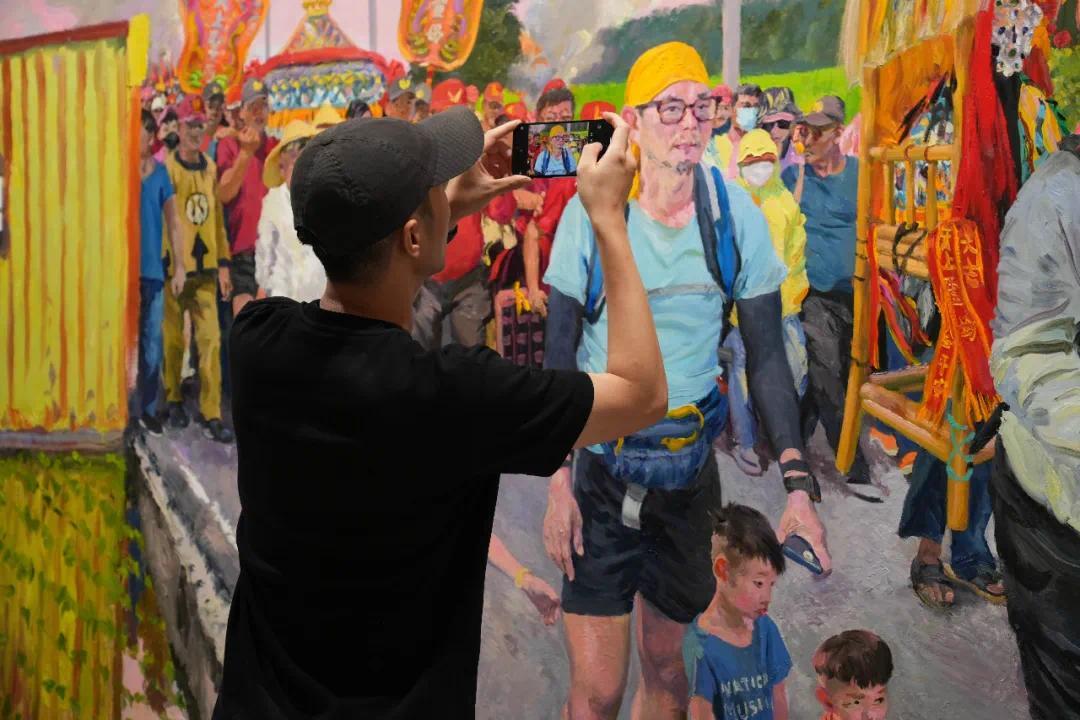 穿越时空,故乡情怀始终贯穿于刘小东的作品之中。在“东北老家”系列中,他对“家人”的描绘,充满了温馨与怀念。这种对故土的深情,也体现在他对台湾的观察中。尽管台湾与大陆有着不同的社会环境,但刘小东感受到了当地人对传统的坚持和对生活的热爱。在大甲妈祖绕境的活动中,他被信众们的热情所感动,那种群体性的情感,与他在东北乡村中感受到的集体精神有着共鸣。