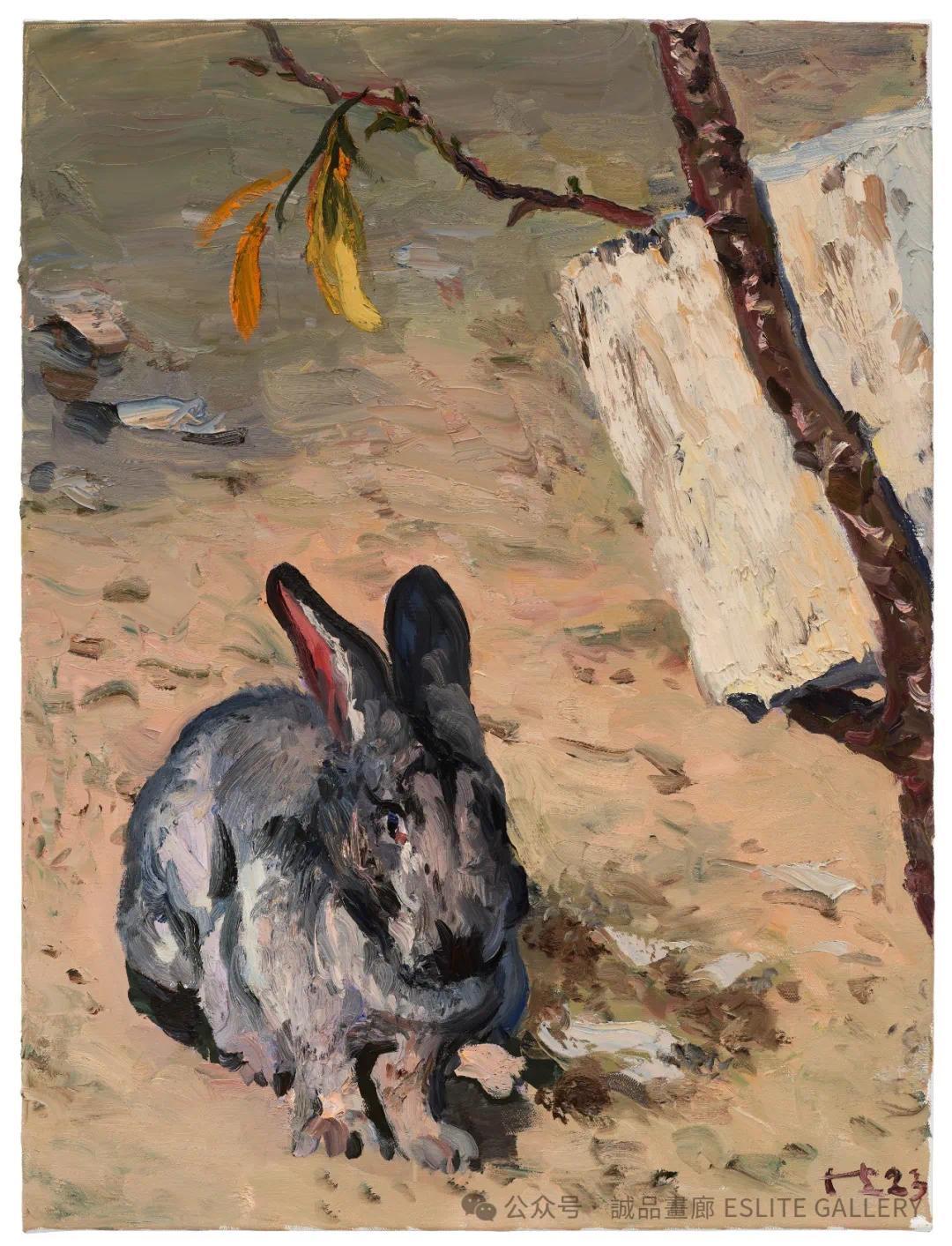 ▲ 刘小东,老兔子,2023,油彩/亚麻布,80 x 60 cm
