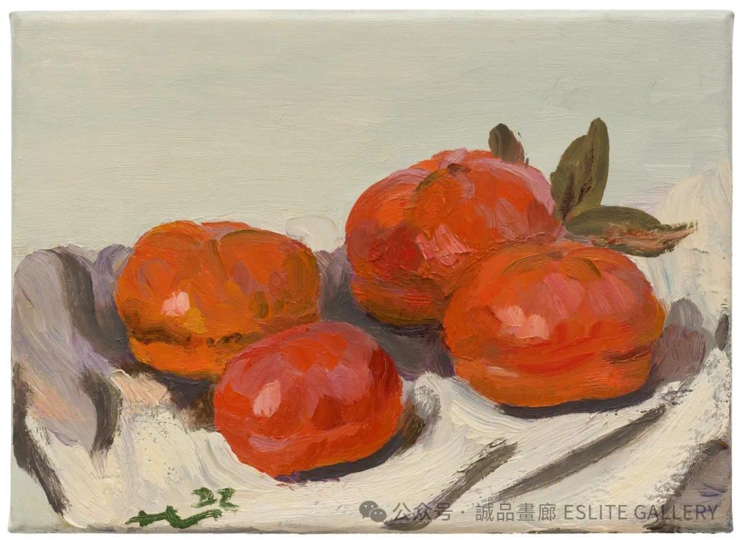 ▲ 刘小东,四柿,2022,油彩/亚麻布,24 x 33 cm