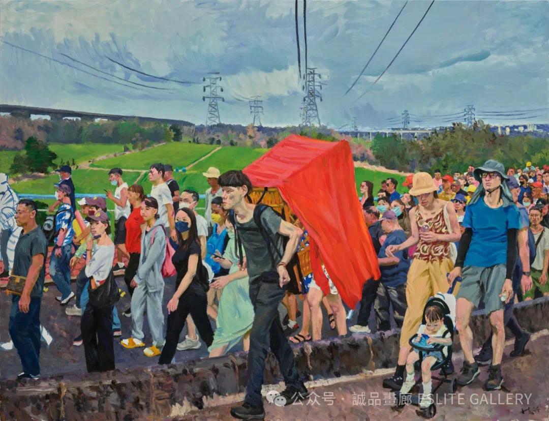 ▲ 刘小东,送礼的路上,2023,油彩/亚麻布,200 x 140 cm