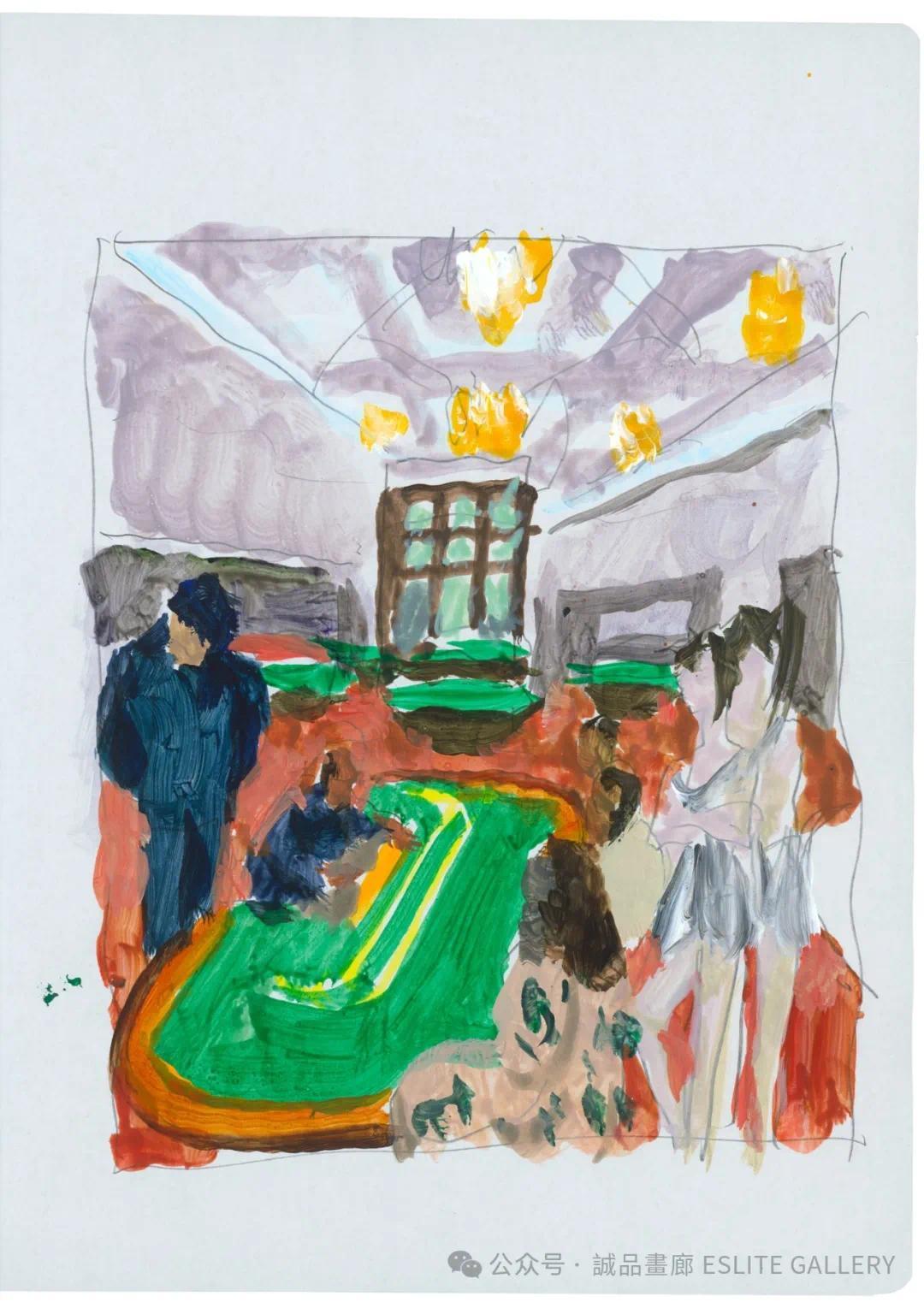 再走几步,便是澳门这座中西文化交汇的城市。澳门的赌场是财富与欲望的象征,也是人性复杂性的缩影。在“澳门赌场”系列中,刘小东以敏锐的观察力,捕捉了赌场中形形色色的人物。他在《圆桌》和《长桌》中,描绘了灯火辉煌的赌场大厅,玩家们神情专注,手中的筹码堆积如山。奢华的装潢、明亮的灯光,与人们内心的焦虑和渴望形成了强烈的对比。