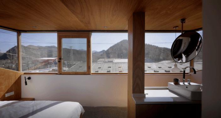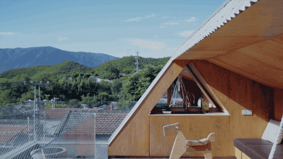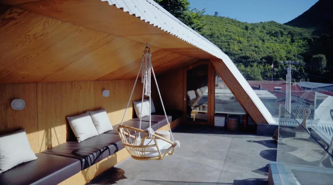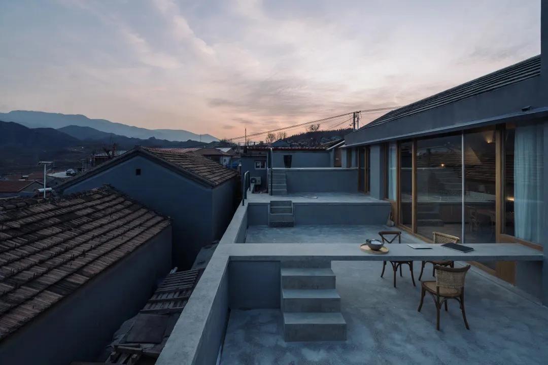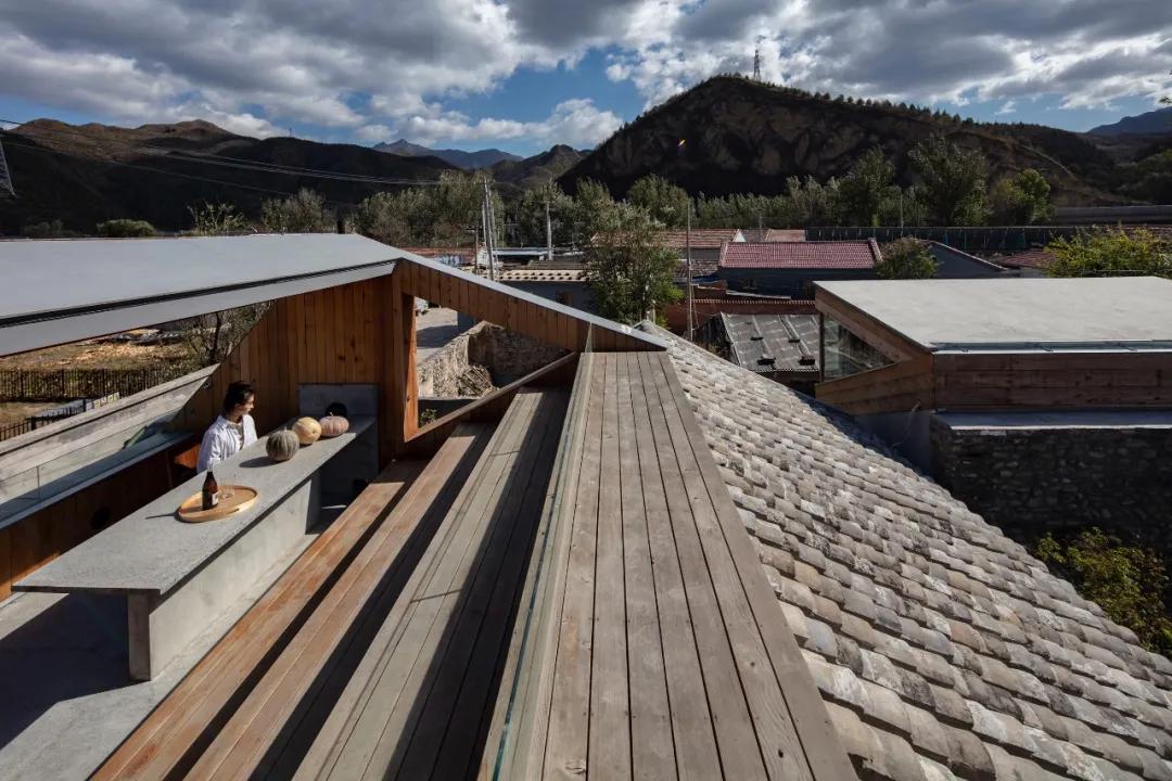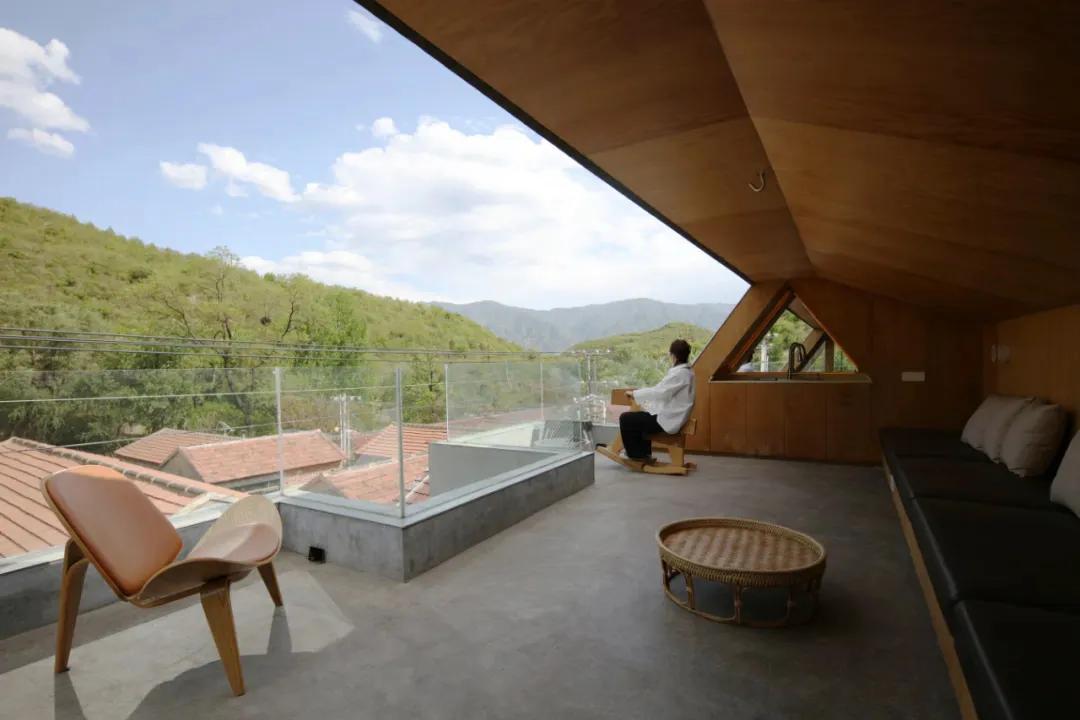 比如“山雀之家”的主人明确提出,希望拥有一处可以在高处看风景的平台。这个事儿其实挺难的。村子本身就处在两座山中间的谷底,而这个院子又在整个村的最低点。虽是青山环绕,却很难感受到周边的景致,目之所及只有周围密密层层的屋顶和一小片天空。