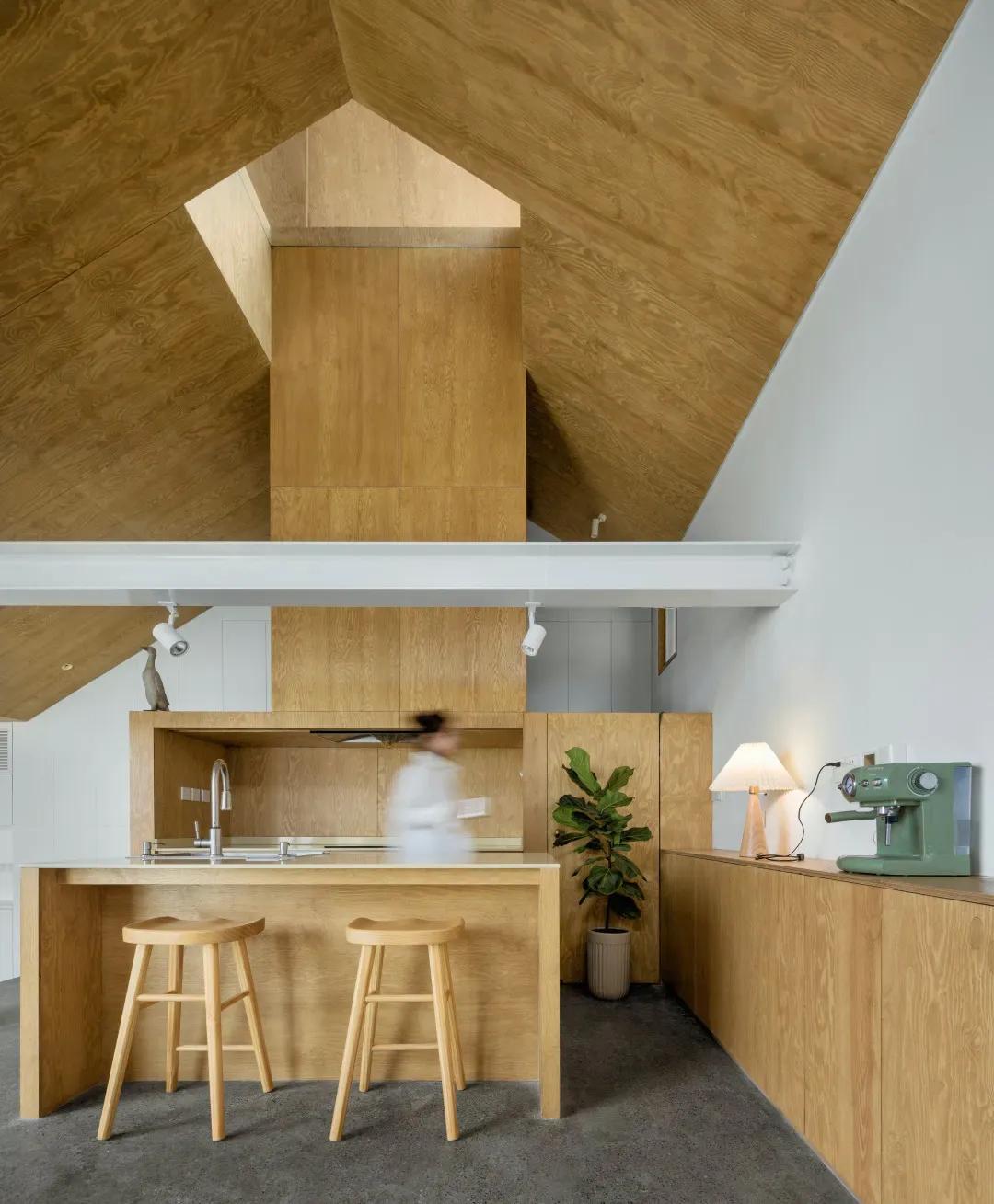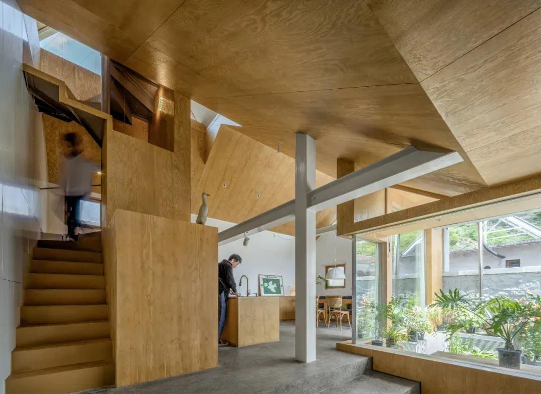山雀之家,除了暴露在外的屋梁,空间内没有任何阻挡物