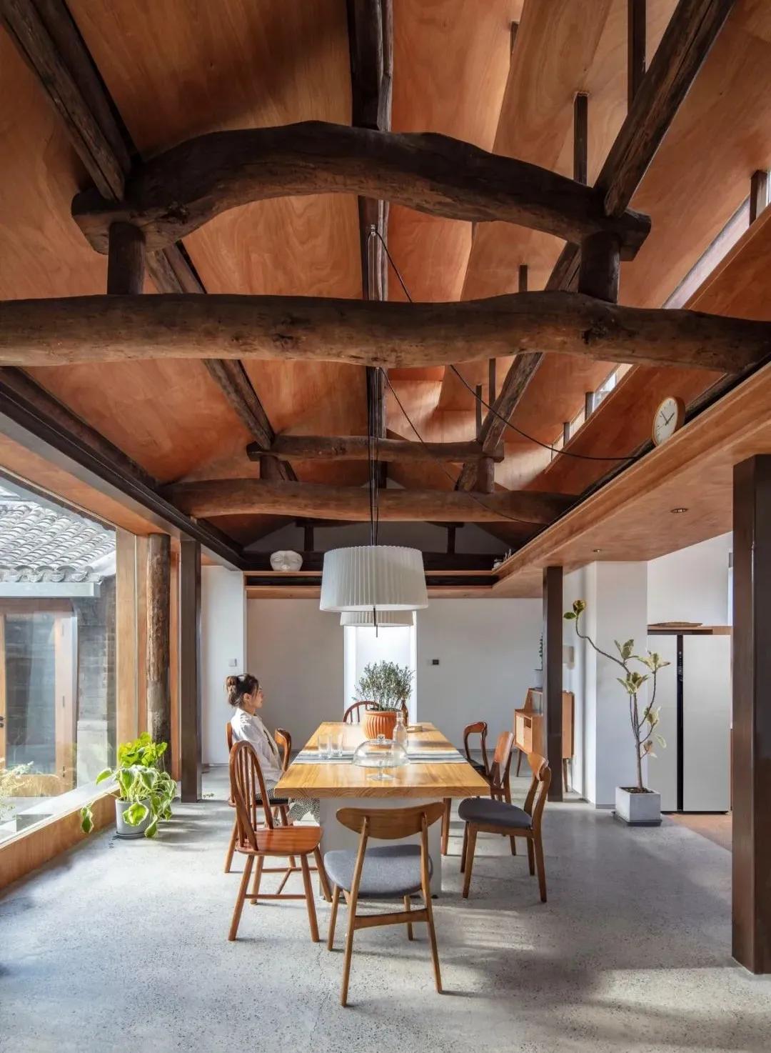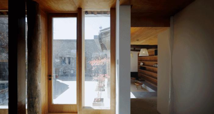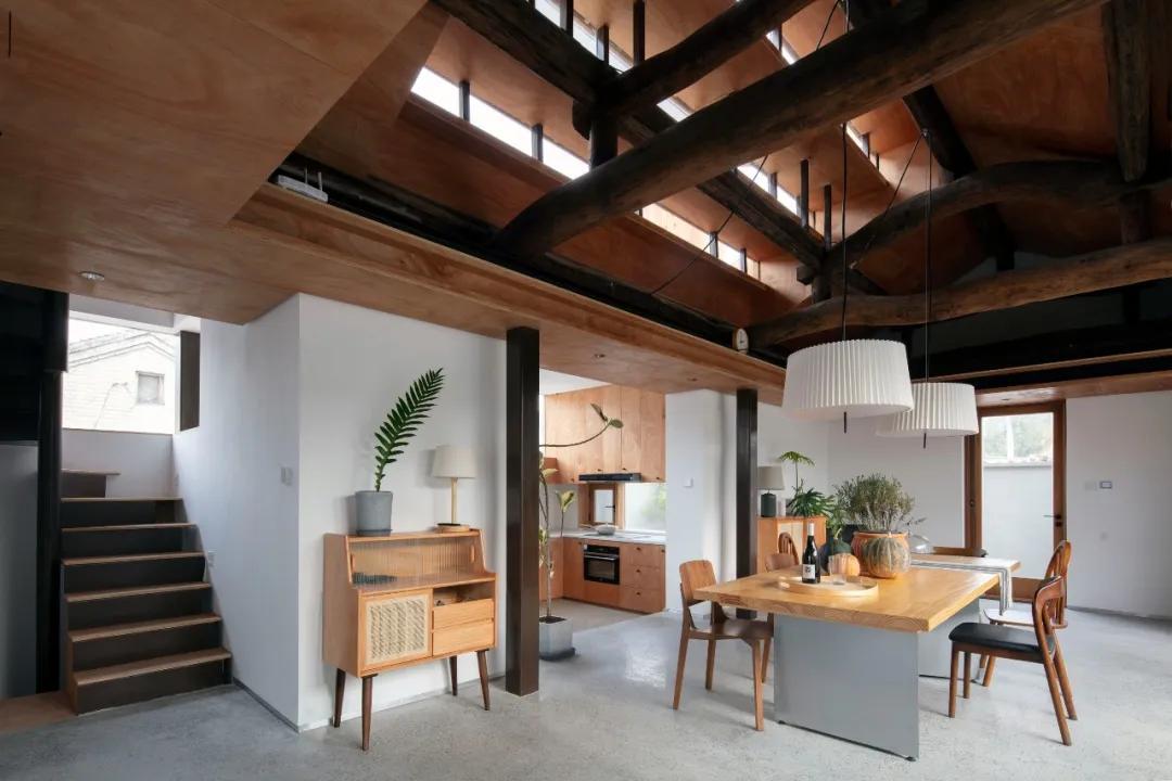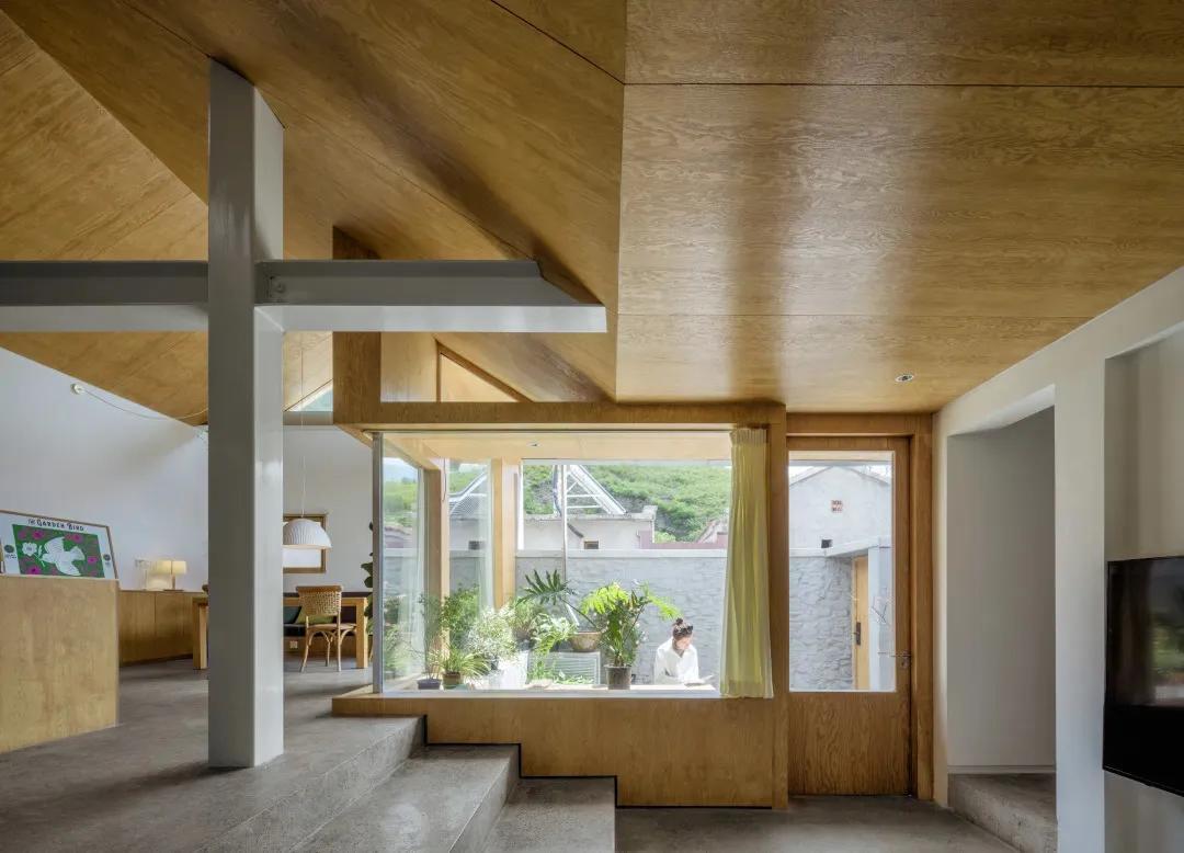 跳墙之家原本的四个房子相互独立,成直打通四个房子,形成“回”字动线。冬天不必再穿过寒冷的院子,人在室内走来走去,不受任何限制