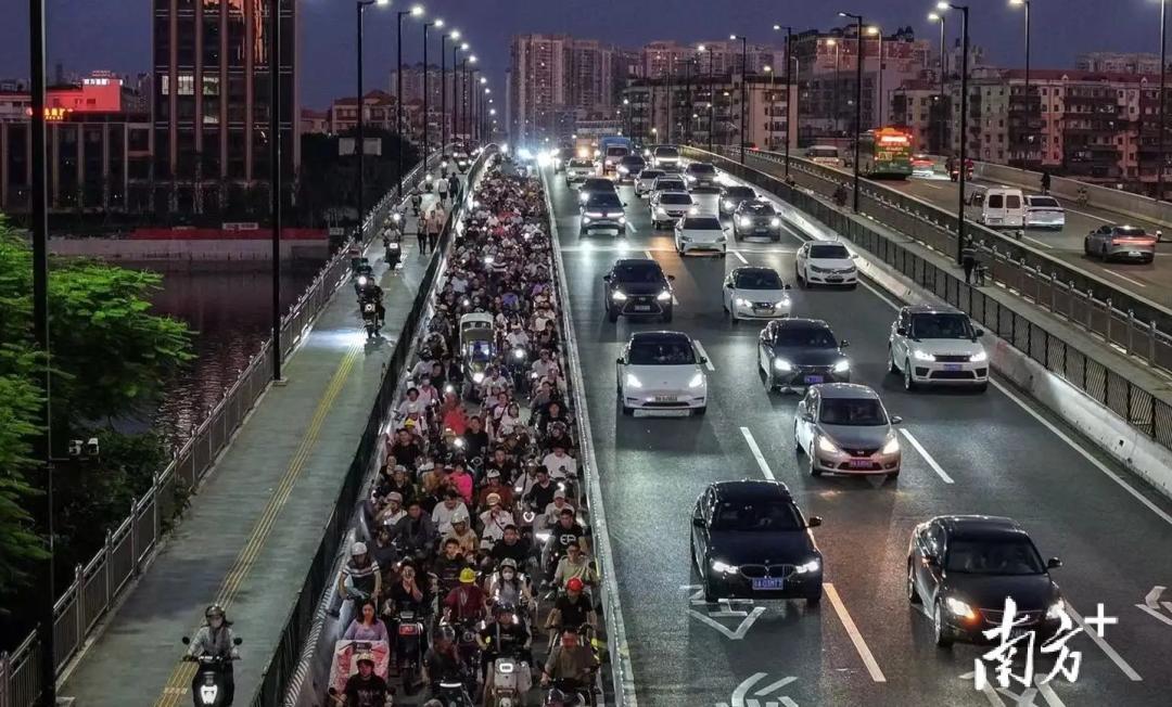 广州金沙洲,专用道上挤满了电鸡。图源:南方+