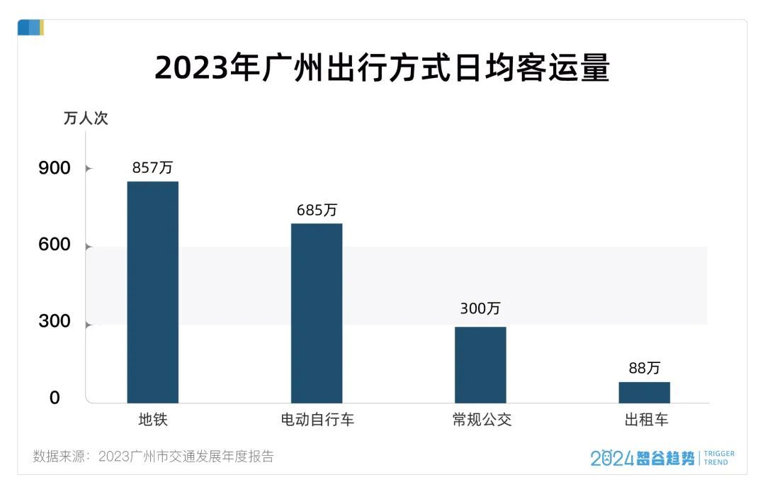 官方报告显示,广州每天的出行总量为4653万人次,其中电鸡日均出行量 685 万人次,仅次于地铁(857万),是常规公交的2.4倍。也就是说,广州人每日出行的含电鸡量,至少已经达到了14.7%。