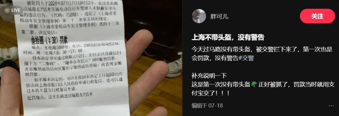 在执法上,上海也是相当严,不戴头盔被交警抓住,不管你是第一次还是惯犯,直接罚款,没有警告。