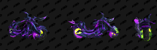 第二款为邪能掠夺者死亡循环,这匹邪能摩托车的配色更加好看,车身燃烧着淡淡的紫色邪能光芒,两个轮子是燃烧着黄绿色邪能烈焰,非常大气。