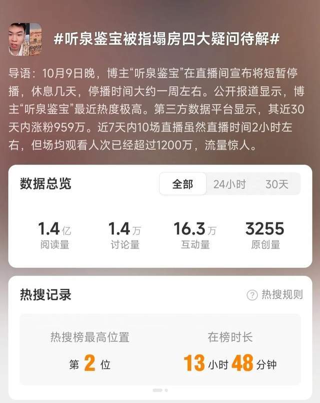 今日,#听泉鉴宝被指塌房四大疑问待解#这一词条冲上热搜,引发全网热议。