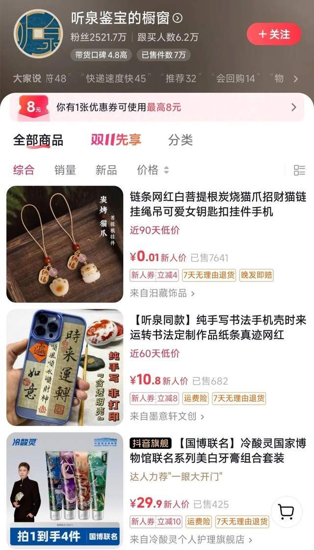 当前,直播电商行业正处动荡时期。面对这种情况,作为新晋头部主播,听泉鉴宝选择走出一条与众不同的变现之路。