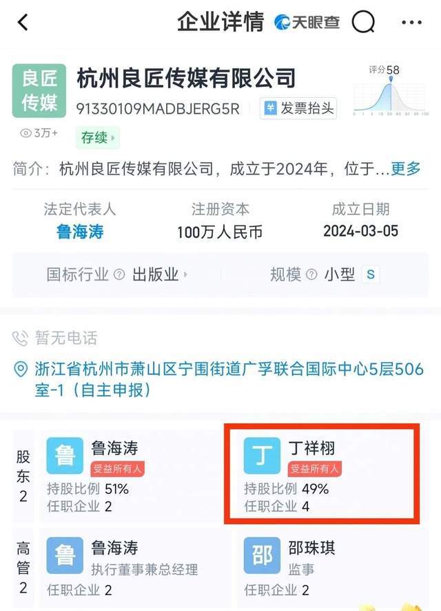 除此之外,由他持股49%的杭州良匠传媒有限公司,已申请注册多枚商标。