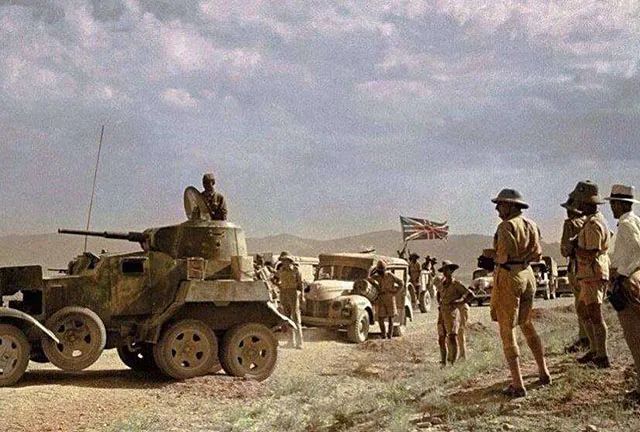 ▲英国军官+阿拉伯士兵的阿拉伯军团