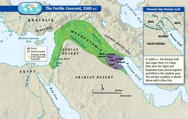 公元前3000年左右,苏美尔人最早在这里创造出辉煌的文化,包括楔形文字、圆周分割率等等。