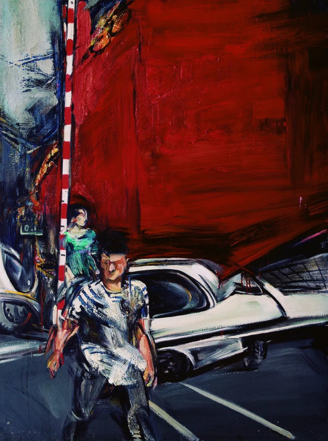 这份时代被期许的未来,影响了整整一代人,它既是孟禄丁的成名作,又开启了一个时代滚滚向前的车轮。然而,这份“未来”在孟禄丁这里,并没有众望所归地延续,它嘎然而止,注定成为个人无法被贪恋的过去。一张名为《火把节》的油画创作,彻底打开了孟禄丁新的路径,几笔率意、有力的黄色,仿佛黑暗中的烈火,点染了时代的阴影,压抑的精神与一代人渴望却又凝重、重叠的面孔。之后《红墙》的出现,标识着他对时代乐观的放弃,转而走向时代的冲突,对“人”在时下精神困境的关注。同年,毕业展中《足球》系列,躁动不安的青春与绘画语言的张力进行了直接地、淋漓尽致地呼应,而关于绘制行为本身的节奏与速度,却也等着未来去再次开启。