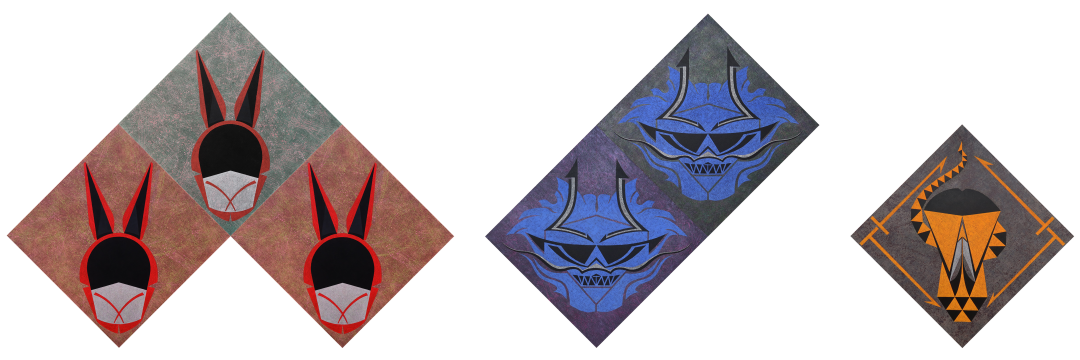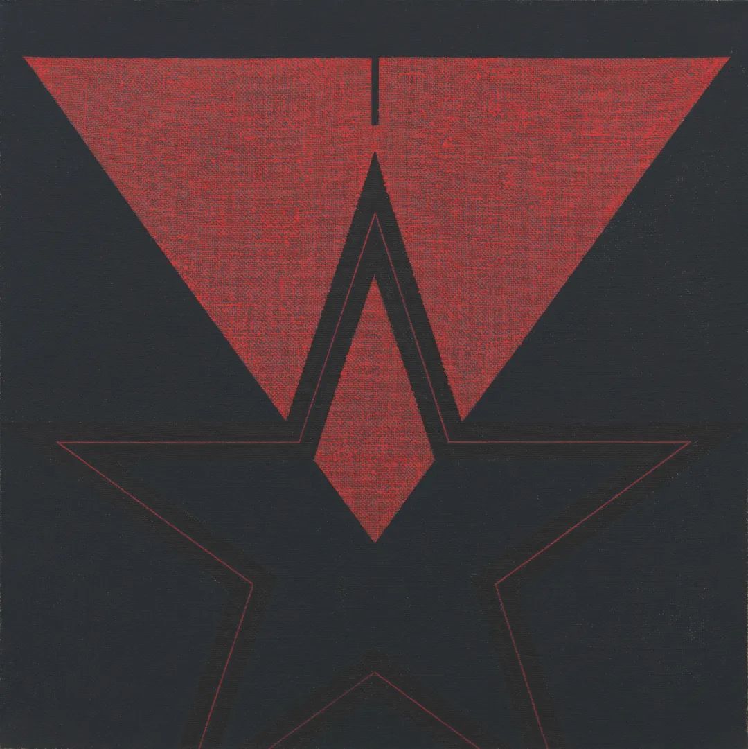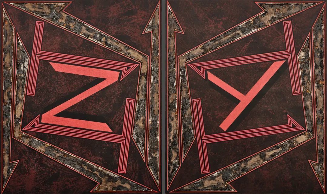 某种意义上,孟禄丁的这批新作是中国当代艺术现场中少有的“冷抽象”,它有着对绘制行为极为理性的克制。那种工业极简或朋克式样的硬边结构,与神秘主义的偶然性结合,反而造就了画面中某种近乎于崇高与至上的感受。这种超现实的画面感,或是未来感,却让我想起那张创作于1985年的《在新时代—亚当夏娃的启示》,作为80年代“理性绘画”的代表作,它与如今的《朱砂》系列虽然处在不同的时代,却有着同样“启示”的意味。