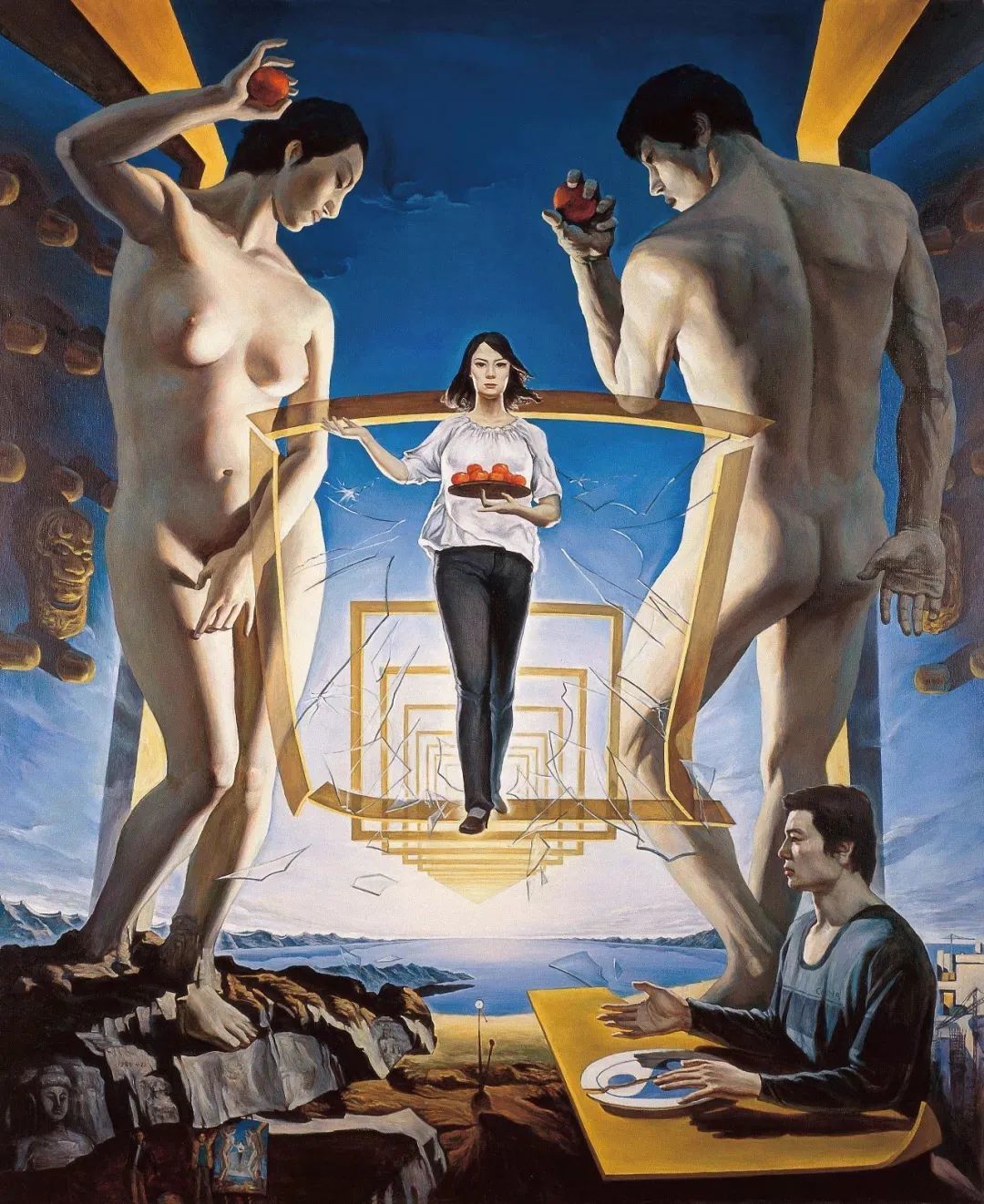 ▲ 《在新时代——亚当▪夏娃的启示》 布面油画 1985年 196cmX164cm
