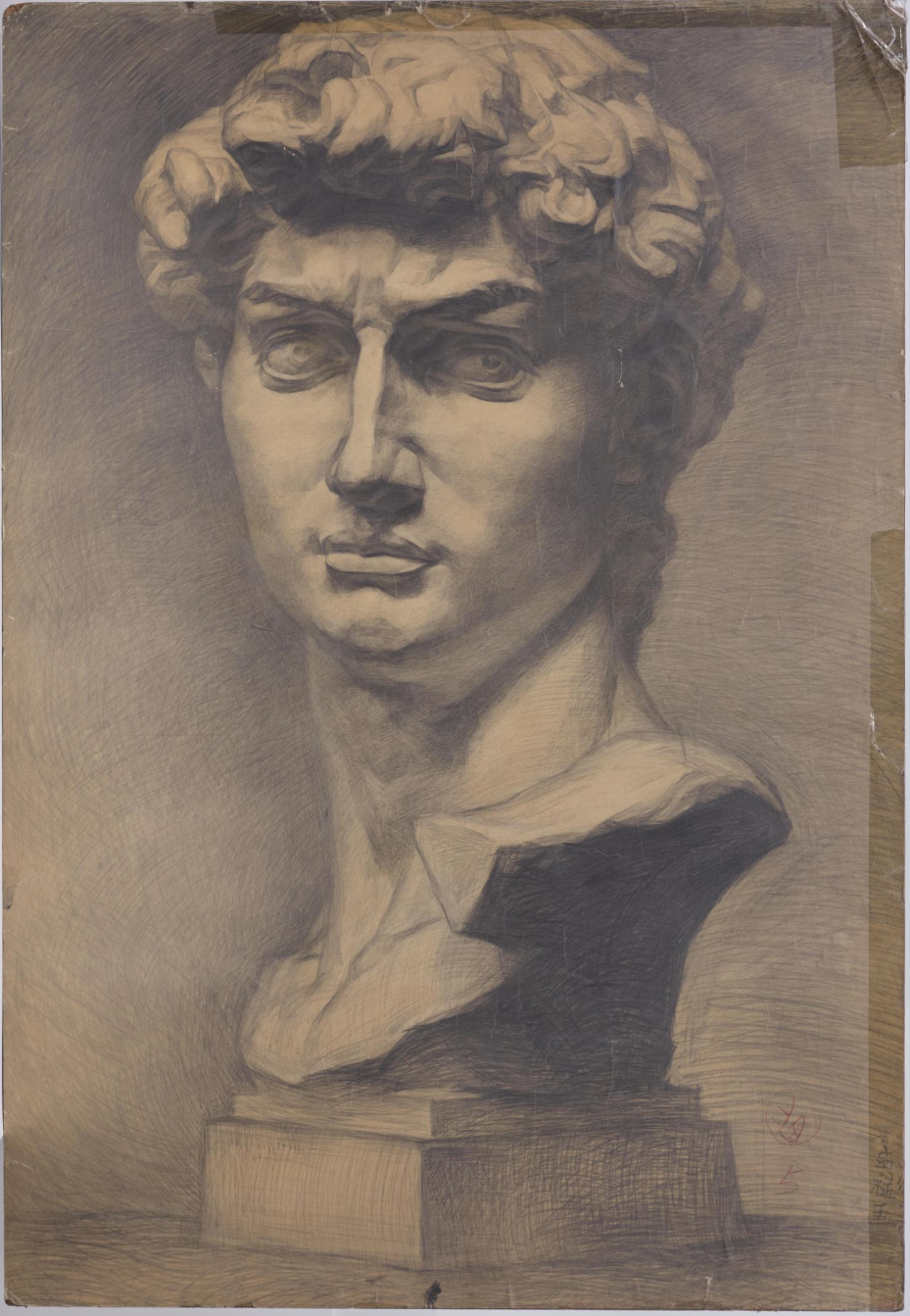▲ 《大卫石膏》课堂素描 1982年 80cm×116cm