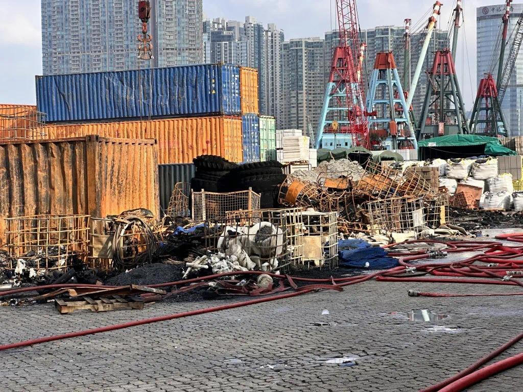 据悉,此次火灾火场面积约20米乘20米,涉及10个集装箱,集装箱最高有三层楼高。因集装箱有倒塌风险,所以消防处动用无人机及灭火机器人协助灌救。