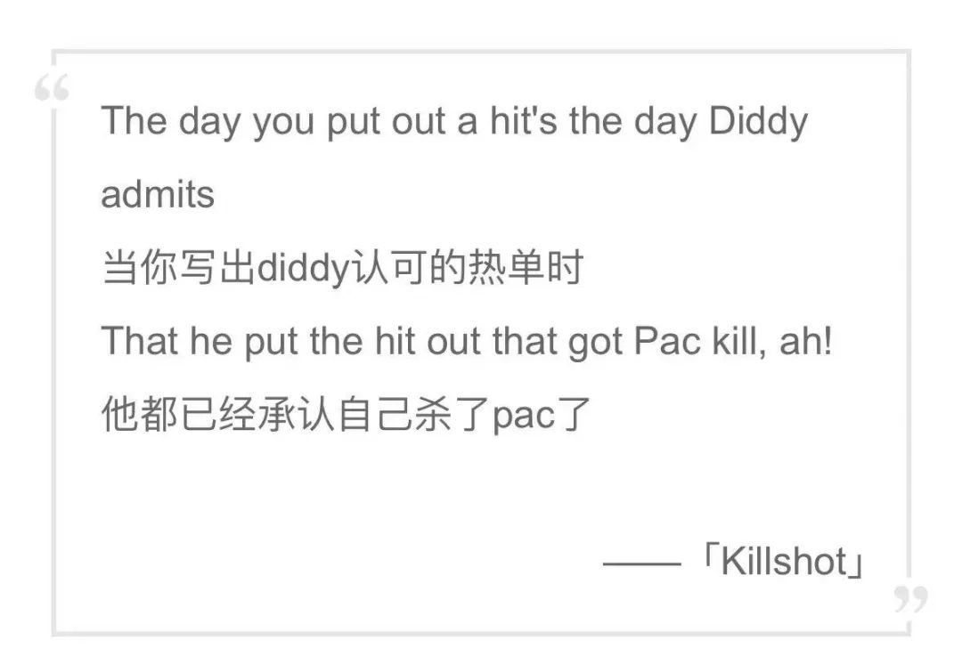 除了以上的指控,吹牛老爹更是一直被卷入买凶杀害嘻哈传奇人物2Pac的传闻中。多位嘻哈歌手都曾经有过爆料和暗示,50 cent在《Final Lap》巡演中曾说吹牛老爹害死了2Pac,姆爷也曾经在歌曲《Killshot》中直指吹牛老爹承认自己杀害了2Pac。