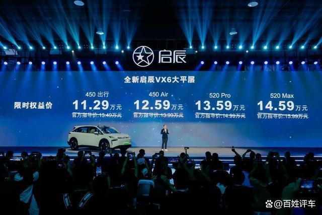 一车变N房,「智」敬快乐人生。10月15日,全新启辰VX6上市发布会盛装启幕。智能百变大纯电SUV全新启辰VX6大平层,携“无忧绿”新配色正式“开盘”。新车限时权益价:450出行 11.29万元;450 Air 12.59万元;520 Pro 13.59万元;520 Max 14.59万元。本次发布会,启辰别出心裁打造“启辰汽车售楼中心”,并邀请金牌置业顾问现场讲解“户型”优势,旨在以车房融合方式,共同探索新时代消费者对于空间升级需求的解决方案,携手打造百变、无忧的全新人居生活体验。
