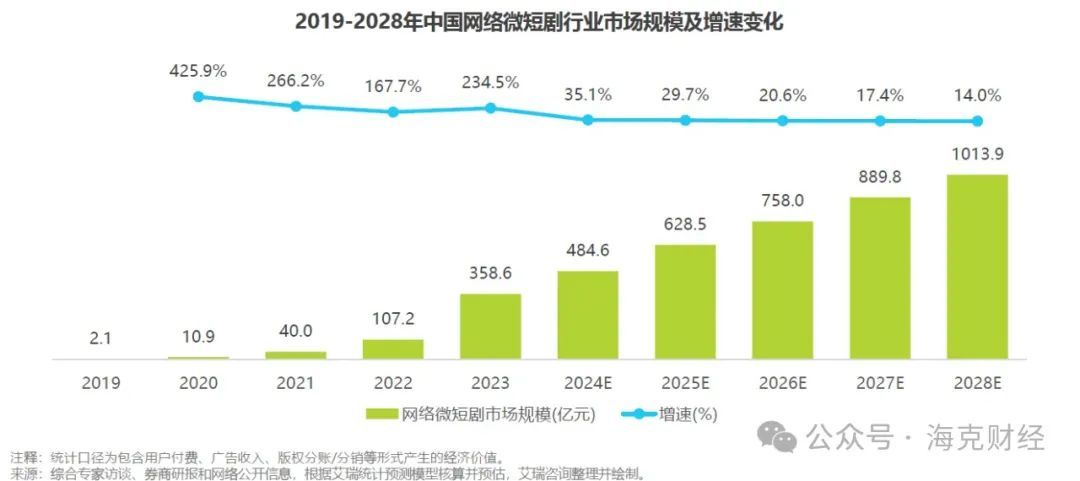 调研机构艾瑞咨询发布的《2024年中国微短剧行业研究报告》显示,国内微短剧市场规模2023年为358.6亿元,较2022年增长了234.5%,2024年将达484.6亿元,预计2028年会突破1000亿元。