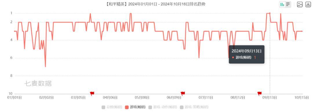 得益于更丰富的玩法产出以及频率更密、规格更高的外观上新,《和平精英》与知名动漫IP新世纪福音战士的二次联动在9月10日一经开启即获成功,连续三日登顶中国iOS游戏畅销榜,并且在9月13日当天迎来2024年以来单日流水的最高峰。