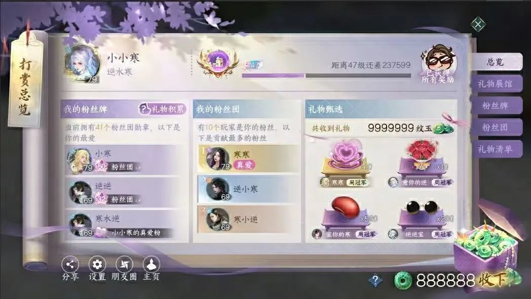 有意思的是,此番《逆水寒》手游还新上线了一个“打赏”功能。玩家打赏他人后可获得专属称号和粉丝牌,而收到付费礼物的玩家则可领取礼物价值60%的非绑定纹玉(付费货币)。这一融合了MMO游戏多人社交与直播打赏生态的创意设计,或许会带来惊喜的商业化增量。