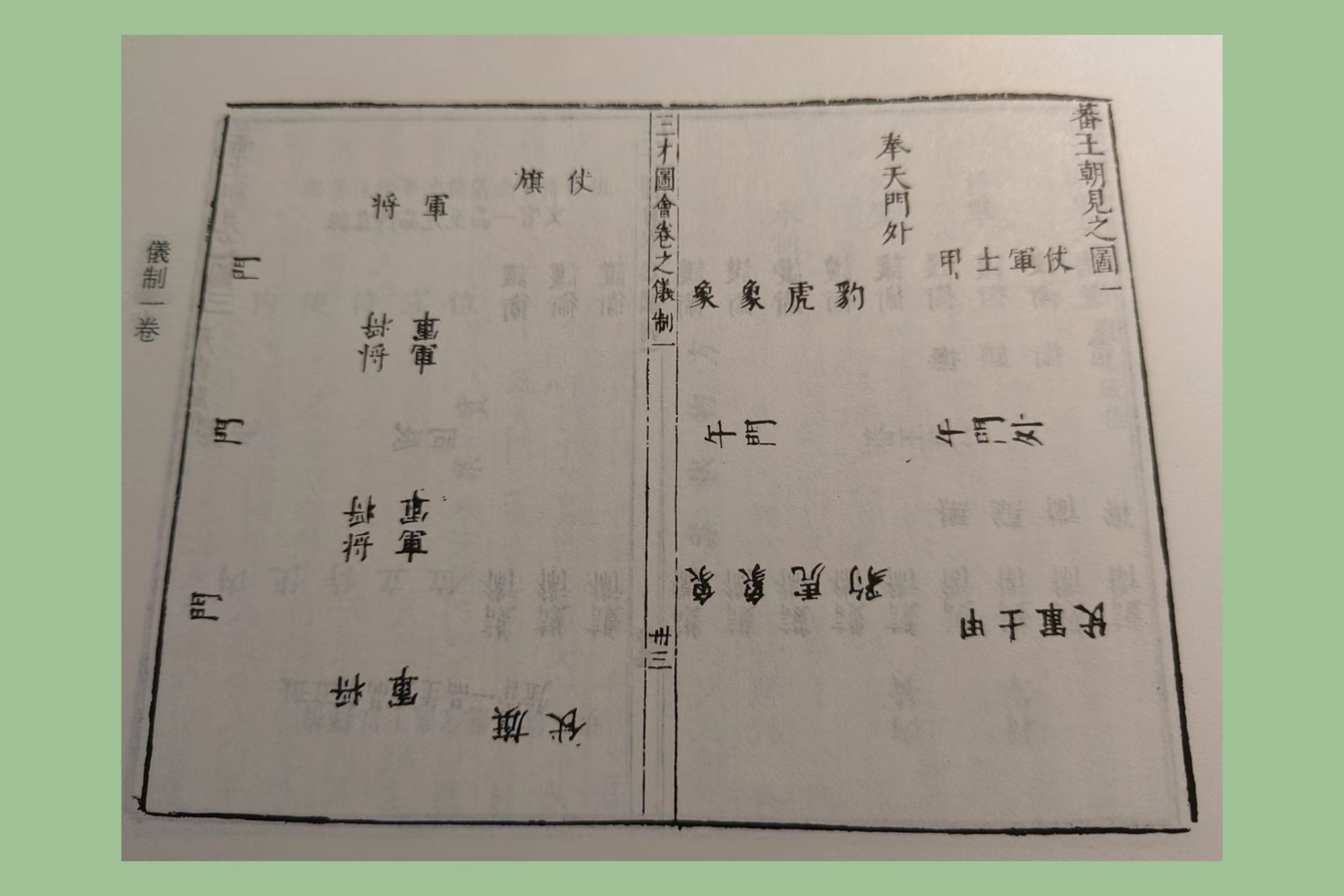 其二,《三才图会》既是明代天文、地理、人物、民俗、文化各类百科知识之汇聚,又是明代物质史、精神史之集中体现。借此,可了解当时社会的知识结构、社会生活、民俗文化等,晚明市民物质繁荣、精神丰裕、文化富足的生活图景可见一斑。晚明时期的对外交流也在细微处可辨,如仪制卷中的蕃王朝见图系列,就体现了朝廷对外邦来使的态度。
