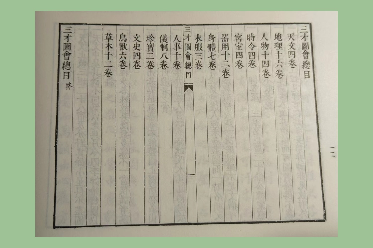 《三才图会》目录,共分十四卷