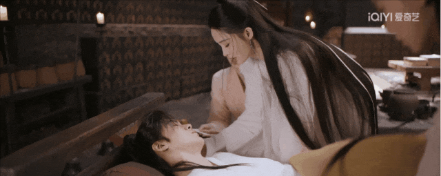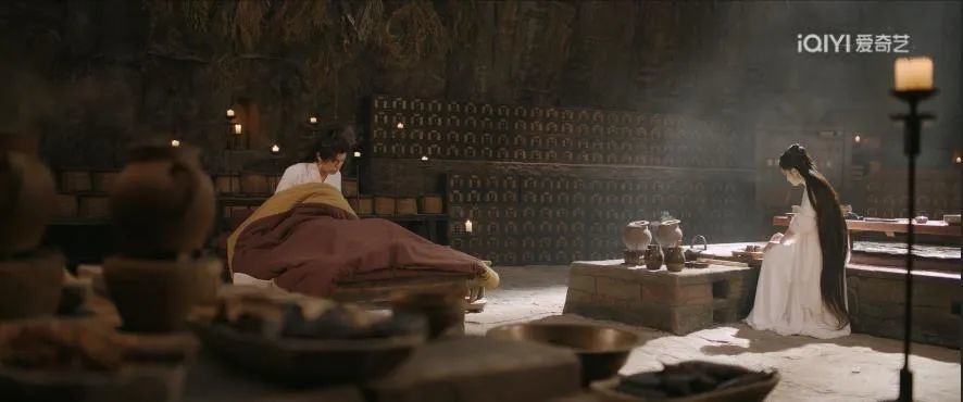 而霍展白在被救醒后,得知女主寒症发作,也是彻夜守候,听到女主醒来就飞奔去见,跑到房前却又情怯克制地原地转身……这双向奔赴又不自知的爱情啊,哪怕没有说出口,观众其实已经磕飞了。