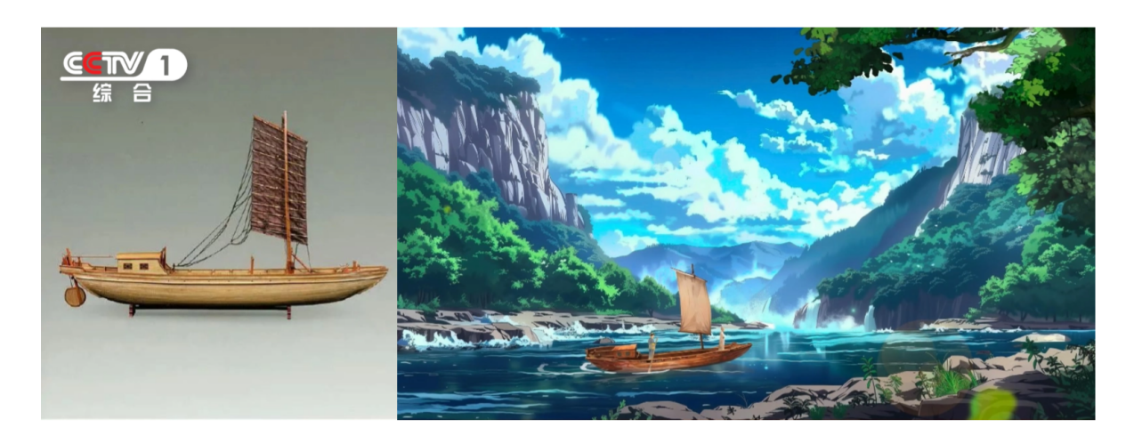 借助人工智能技术,参考“唐船复原模型”生成《早发白帝城》中李白乘坐的船只