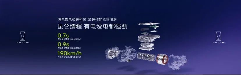 当前大部分品牌的增程车,几乎都有“有电一条龙,没电一条虫”的尴尬,在满电和馈电模式下的动力输出相差很大,尤其是馈电模式下的动力衰减,在高速、爬坡等路况下表现较弱。而阿维塔07的昆仑增程技术,第一个优势是做到了“有电没电都强劲”。