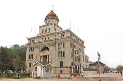 西交民巷东口第一栋欧式建筑,为大陆银行北京分行旧址。基座用大块花岗石砌造,上层檐口挑出,入口大门做重点装饰,三层拱门内嵌券柱,两侧做科林斯壁柱,楼顶设有钟楼,钟楼顶上是圆形的子母钟。整座大楼外观壮观宏伟,是中国建筑师设计西方古典式建筑质量极高的一座。