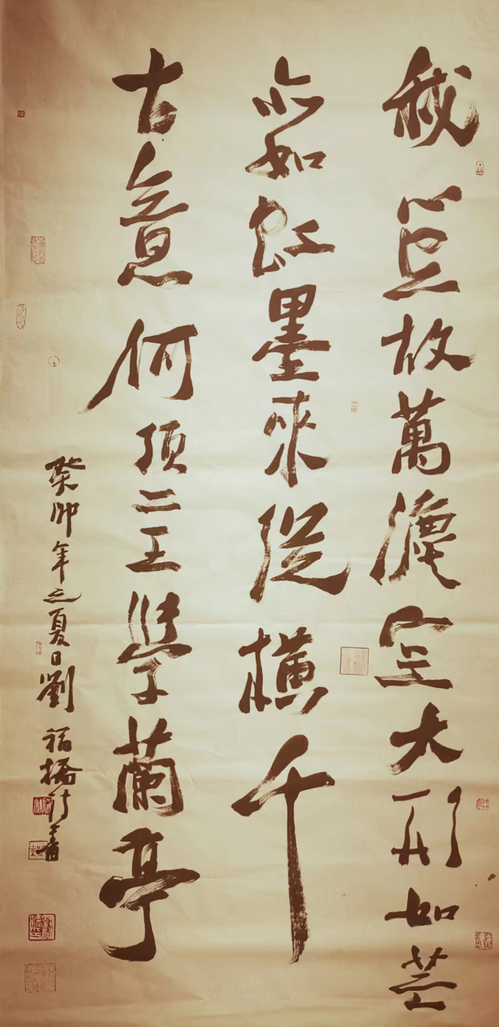 刘福桥,别署师竹斋,如如堂,圣莲斋,心逸居士。著名书画家;书画理论评论家;中国书法家协会会员;国家一级美术师;中国国家画院书法院研究员;沈鹏先生入室弟子;沈鹏书法艺术研究院院长;国务院对外关系书画国礼特聘艺术家;中国合卢寺禅林书画院副院长;全国支援乡村建设最美艺术家。作品曾获中国书协举办的全国颜真卿书法大赛一等奖,参加国家级大展四十多次,获奖二十多次。作品被北京大学、清华大学、中国美术馆等收藏,出版有《当代名家刘福桥书法集》、《刘福桥书画集》。